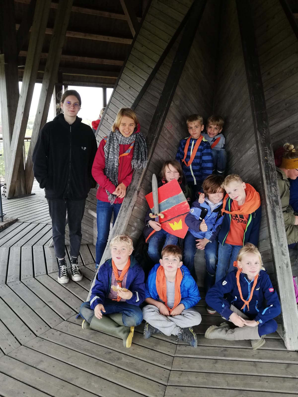 Weil unser Motto „Ritter und Mittelalter“ war, haben sich die Wölflinge am Samstag auf dem Ritterspielplatz an der Burg Linn austoben dürfen. Dann haben wir in Kleingruppen die Burg erkundet und auf dem Bergfried gepicknickt. Daraufhin spielten ein Händler-Spiel auf der Burgwiese, wobei wir allerdings von einem Starkregen überrascht wurden. Nachdem alle Wölflinge wieder getrocknet und aufgewärmt waren, bereiteten wir das gemeinsame Abendessen vor. Am Abend wurde wieder Lagerfeuer gemacht und Marshmallows gegessen. Durch ein Geisterspiel bereiten wir die Wölflinge auf die anschließende Nachtwanderung durchs umliegende Naturschutzgebiet vor, die alle Wös sehr spannend fanden.